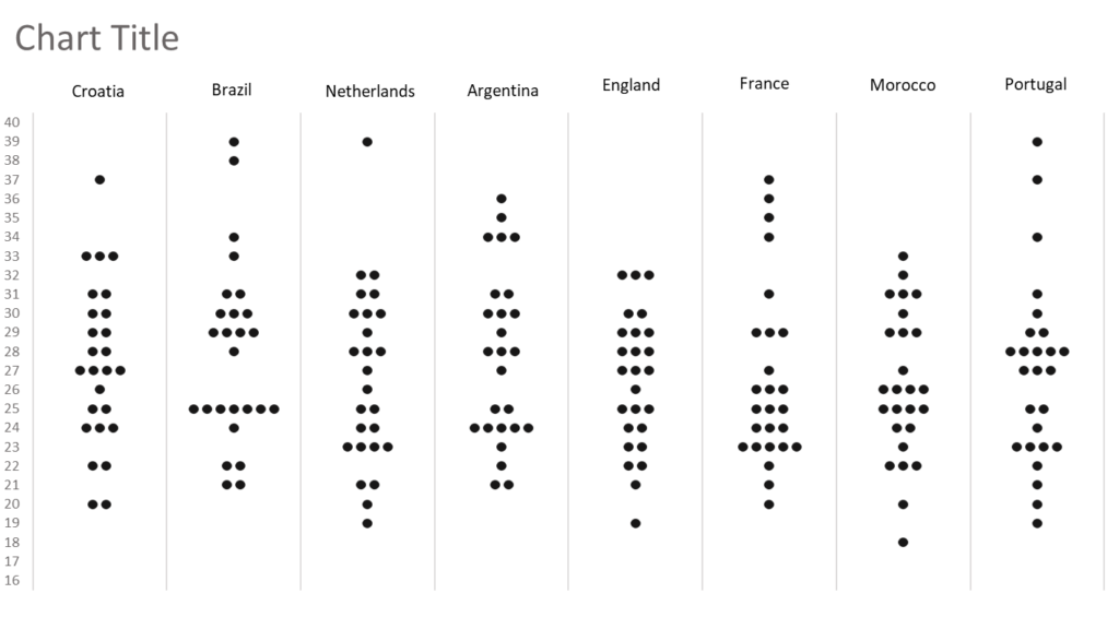 I want to create a bee swarm chart with World Cup 2022 quarter finalist teams’ data. Let’s make it step by step in Excel together.