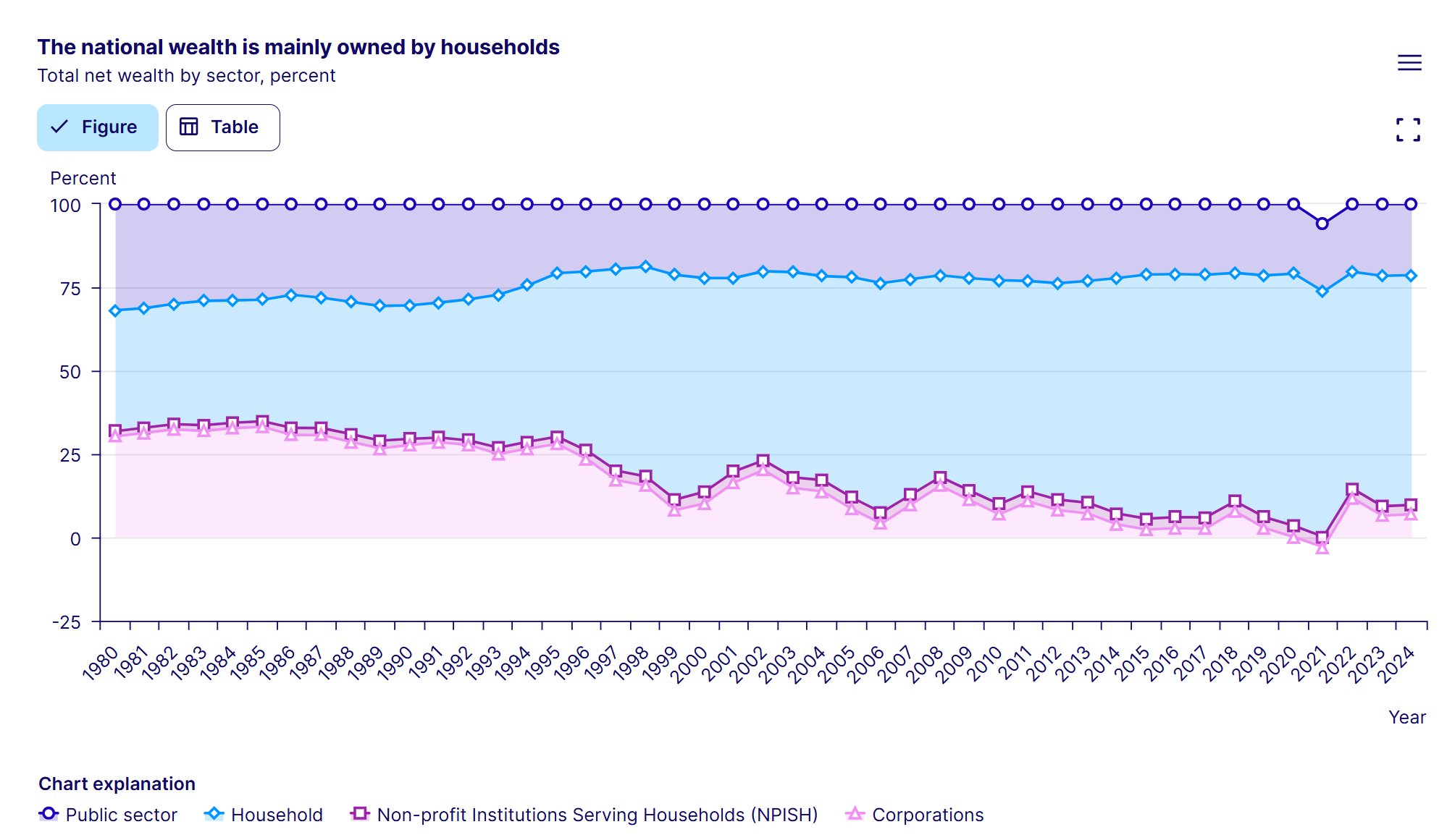 100% stacked area charts, as implied by the term ‘stacked’, represent a total, while the ‘100%’ indicates proportions within that total. The area chart format further conveys how these proportions change over time. Since the sum of all categories always equals 100%, data series placed at both the bottom and top allow for easy visual comparison. Therefore, this should be considered when ordering data series. If there are more than five categories, grouping and color-coding should be considered for better readability.