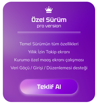 Çalışan bilgilerinin takip edilebileceği ekrana ücretsiz sahip olmak veya dosya hakkında daha fazla bilgi almak için deniz@creadata.com.tr adresine mail atabilirsiniz.